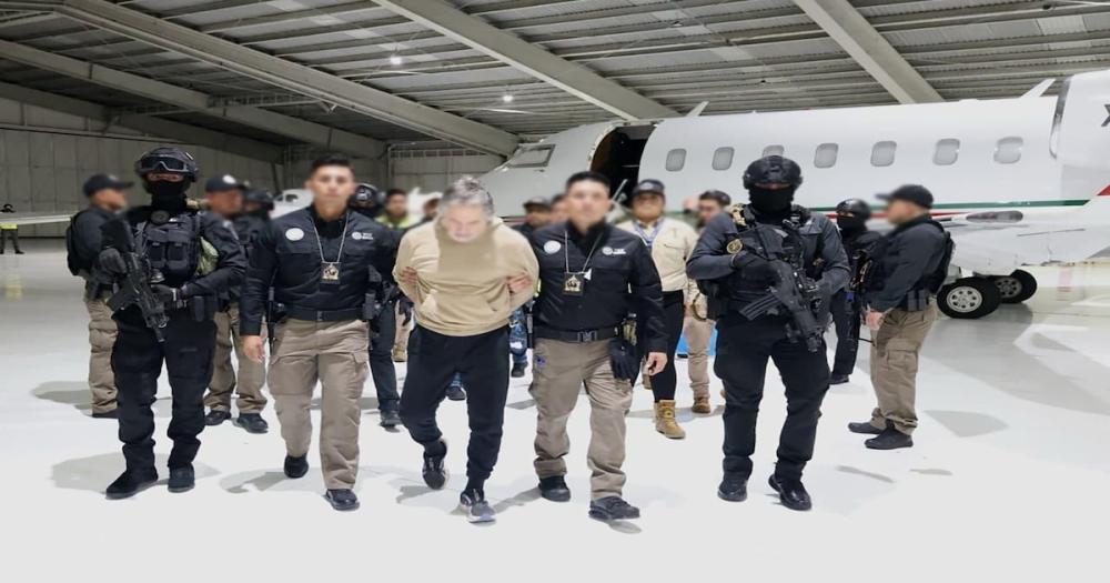 El avión donde era trasladado Hernán Bermúdez Requena ya aterrizó en el Aeropuerto Internacional de Toluca, en el estado de México. Quien fuera exsecretario de Seguridad de Tabasco será llevado al penal de máxima seguridad del Altiplano, en Almoloya de Juárez. Tras el aterrizaje de la aeronave, las autoriades cumplimentaron la orden de aprehensión en contra del hombre como parte del protocolo como puede verse en un breve video compartido por las autoridades. A dicho sujeto se le identifica como presunto líder de La Barredora y estaría ligado con el Cártel Jalisco Nueva Generación (CJNG). El hombre apodado El Abuelo y/o Comandante H fue expulsado del territorio paraguayo el 17 de septiembre y su llegada al Edomex ocurrió un día después. Lo anterior luego de que el avión donde es trasladad hiciera una parada en Bogotá, Colombia.Le cumplimentan orden de aprehensión Fue detenido “por su probale participación en el delito de asociación delictuosa, extorsión y secuestro exprés. Tiene derecho a guardar silencio”, según expone un elemento de la Agencia de Investigación Criminal (AIC). Primeros informes indican que Bermúdez Requena será trasladado por tierra al penal con el apoyo de camionetas tipo Suburban. Información compartida en el portal FlightAware registra que alrededor de las 5:30 de la tarde del 18 de septiembre, el avión Bombardier Challenger 605 con matricula XB-NWD estaba en Tapachula, Chiapas. Poco antes de las 7:00 de la noche los registros de flightradar24 mostraban a la unidad próxima al Aeropuerto Internacional de Toluca. Tanto en el Aeropuerto Internacional de Toluca, donde aterrizó la aeronave, como en inmediaciones del penal del Altiplano, fueron desplegados elementos de seguridad. La Fiscalía General de la República (FGR) cuenta con una orden de aprehensión en contra del exfuncionario de Tabasco, sobre quien pesan acusaciones acerca de delincuencia organizada y secuestro agravado. Identifican a cuatro presuntos operadores Otras cuero personas son investigadas por su presunta responsabilidad en el delito de delincuencia organizada y quienes serian operadores del exfuncionario. Se trata de Daniel H, alias El Prada, quien es identificado como uno de los lideres de La Barredora. También es investigado José del Carmen C. R., alias La Rana.Incluso, uno de los hombres presuntamente relacionados con actividades criminales es Savier Eduardo V. O., quien cuenta con una ficha de búsqueda compartida por la Fiscalía General del Estado (FGE) de Tabasco. Mientras que Manuel de Atocha R. H. es el cuatro hombre incluido e el documento que contiene los cargos en contra del exsecretario de Seguridad.